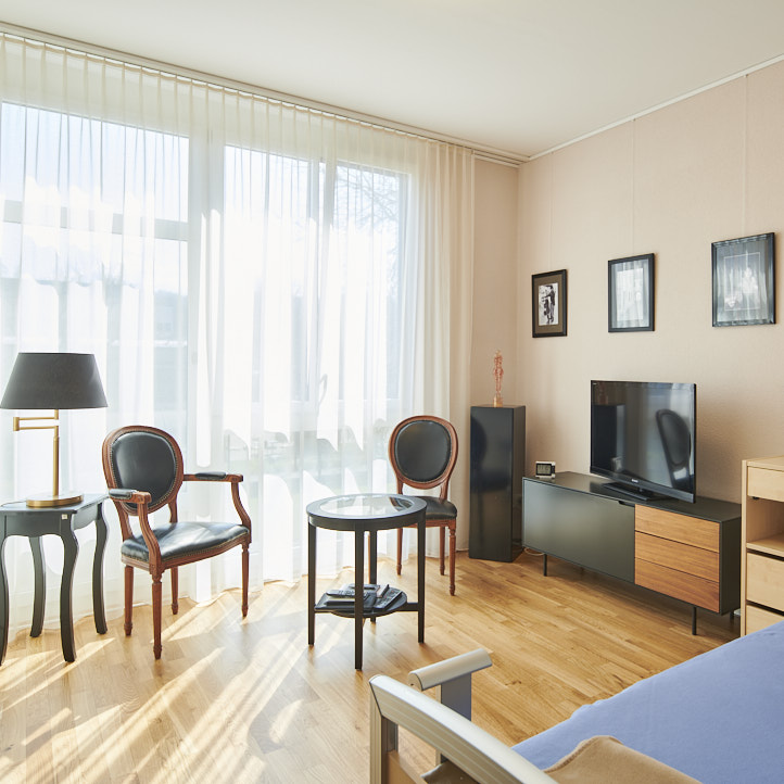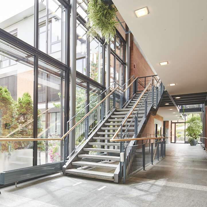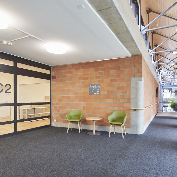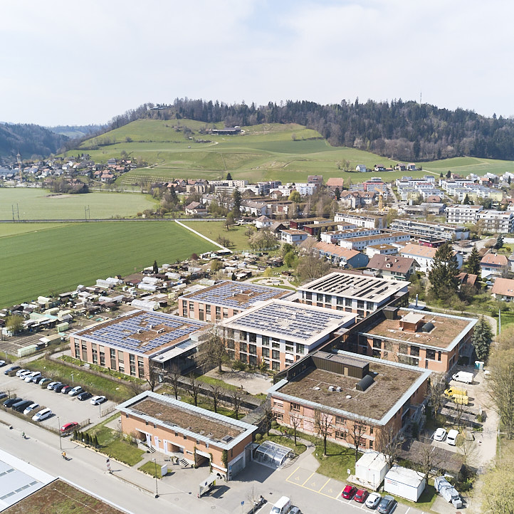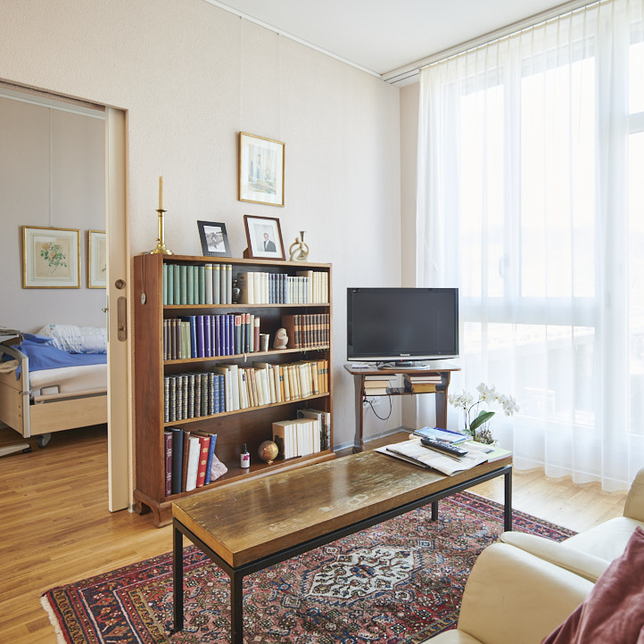 Das Zentrum Schlossmatt Region Burgdorf besteht aus insgesamt sechs Häusern und elf Pflegeabteilungen. Backstein und grosszügigen Glasfronten sorgen für eine warme, lichtdurchflutete Atmosphäre. Die hellen Einbettzimmer mit eigener oder zu zweit genutzter Nasszelle können unsere Bewohnenden mit privaten Möbelstücken und Bildern individuell gestalten. Jede unserer Pflegeabteilungen verfügt über einen Tagraum mit offener Küche und Wohnbereich. Hier treffen sich die Bewohnenden um gemeinsam zu Essen oder Zeit zu verbringen.