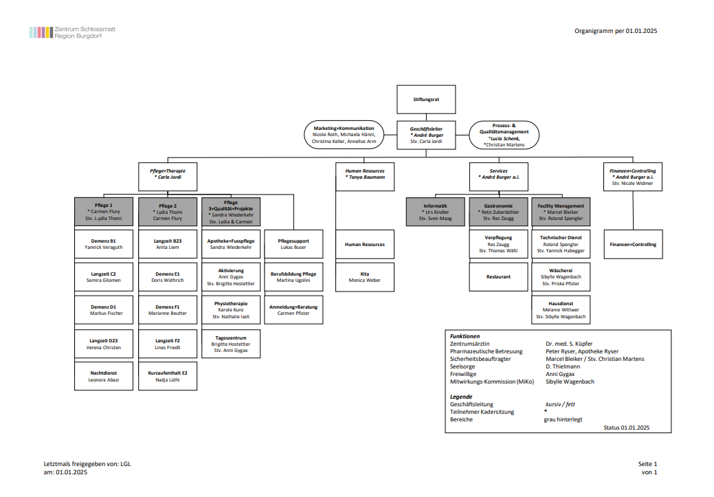 Dem Stiftungsrat obliegt die Förderung des Stiftungszwecks und die finanzielle Sicherung des Stiftungsvermögens. Er übt die oberste Aufsicht über die Geschäftsführung des Zentrums Schlossmatt Region Burgdorf und über die ihm unterstellten Organe aus.